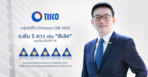 มิติหุ้น – บริษัท ทิสโก้ไฟแนนเชียลกรุ๊ป จำกัด (มหาชน) หรือ กลุ่มทิสโก้ ได้รับการประเมินคะแนนการกำกับดูแลกิจการบริษัทจดทะเบียน (Corporate Governance Report: CGR) ประจำปี 2568 ในระดับ “ดีเลิศ” (Excellent CG Scoring) หรือ 5 ดาว ซึ่งเป็นระดับสูงสุดต่อเนื่องเป็นปีที่ 19 จากสมาคมส่งเสริมสถาบันกรรมการบริษัทไทย (IOD) ภายใต้การสนับสนุนของตลาดหลักทรัพย์แห่งประเทศไทย (ตลท.) และสำนักงานคณะกรรมการกำกับหลักทรัพย์และตลาดหลักทรัพย์ (ก.ล.ต.)