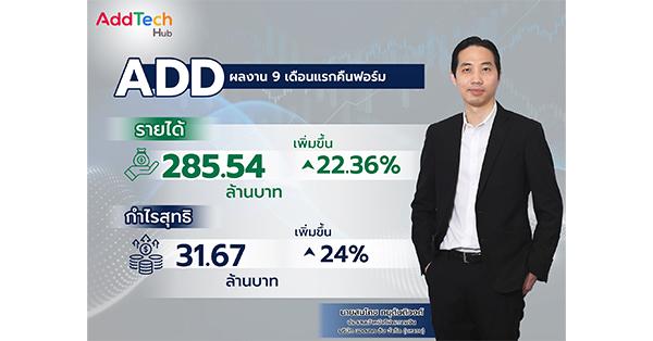 นายสมโภช ทนุตันติวงศ์ ประธานเจ้าหน้าที่ฝ่ายการเงิน บริษัท แอดเทค ฮับ จำกัด (มหาชน) หรือ ADD ผู้ดำเนินธุรกิจให้บริการดิจิทัลคอนเทนต์และให้บริการดิจิทัลโซลูชัน เปิดเผยว่า ท่ามกลางภาวะเศรษฐกิจไทยที่ยังคงเผชิญความไม่แน่นอน จากปัจจัยด้านนโยบายการค้าโลกและความระมัดระวังในการใช้จ่ายของผู้บริโภค ทาง ADD ได้มีการปรับกลยุทธ์ทางธุรกิจ มุ่งเน้นการขยายธุรกิจไปยังกลุ่มลูกค้าองค์กร (B2B) ผ่านบริการการตลาดดิจิทัล และพัฒนาแพลตฟอร์มโซลูชันที่ใช้ในอุตสาหกรรมอื่น ๆ ส่งผลเชิงบวกต่อตัวเลขผลการดำเนินงานในงวดไตรมาส 3/2568 และงวด 9 เดือนแรกของปี 2568 ที่มีรายได้จากการให้บริการ 94.59 ล้านบาท และ 285.54 ล้านบาท หรือเพิ่มขึ้น 21.81% และ 22.36% ตามลำดับ เมื่อเทียบกับช่วงเดียวกันของปีก่อน (YoY) และมีกำไรสุทธิ 15.65 ล้านบาท และ 31.67 ล้านบาท หรือเพิ่มขึ้น 42.90% และ 24% ตามลำดับ (YoY)