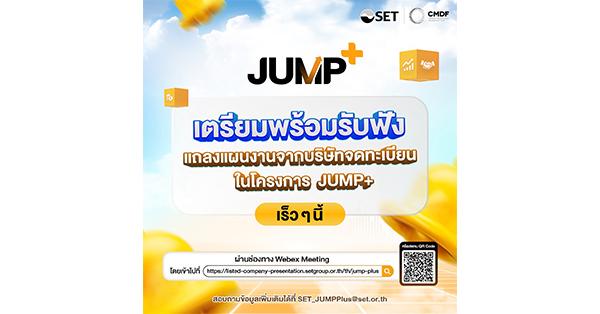 โครงการ JUMP+ เป็นหนึ่งใน flagship projects ตามแผนกลยุทธ์ของตลาดหลักทรัพย์ฯ ที่มุ่งส่งเสริมการเพิ่มมูลค่า และสร้างการเติบโตอย่างยั่งยืนให้กับ บจ. และตลาดทุนไทย โดยตลาดหลักทรัพย์ฯ และพันธมิตรสนับสนุนบริษัทในการดำเนินงานตามแผนธุรกิจ การขยาย visibility ทั้งในและต่างประเทศ ปัจจุบันมีบริษัทสมัครเข้าร่วมโครงการแล้ว 85 บริษัทและเพิ่มขึ้นต่อเนื่อง ทั้ง SET และ mai ในหลากหลายกลุ่มอุตสาหกรรม