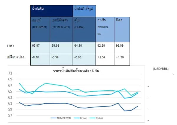 - วันที่ 14 พ.ย. 68 ท่าส่งออกน้ำมัน Novorossiisk ของรัสเซียถูกโดรนของยูเครนโจมตี ส่งผลให้หยุดดำเนินการชั่วคราว (กลับมาดำเนินการได้ในวันที่ 16 พ.ย. 68) กระทบการส่งออกน้ำมันดิบและน้ำมันสำเร็จรูปรวมราว 2.2 ล้านบาร์เรลต่อวัน