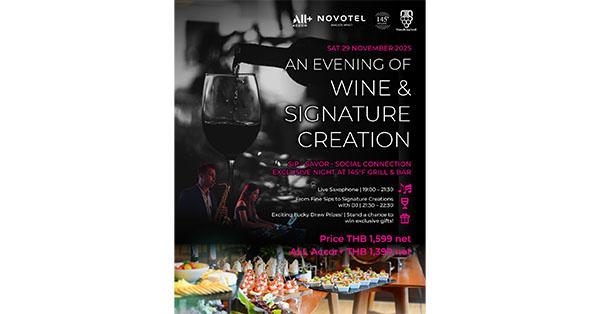 มิติหุ้น – โรงแรมโนโวเทล กรุงเทพ อิมแพ็ค ขอเชิญทุกท่านร่วมสัมผัสประสบการณ์ค่ำคืนพิเศษ “An Evening of Wine & Signature Creation” ในวันเสาร์ที่ 29 พฤศจิกายน 2568 เวลา 18.30 น. จัดงาน ณ 145 กริล แอนด์ บาร์ (145°F Grill & Bar) ร้านอาหารสุดเก๋ ที่นำเสนอเมนูนานาชาติและเมนูสเต็กชั้นเยี่ยมท่ามกลางบรรยากาศผ่อนคลาย เหมาะสำหรับการพบปะ พูดคุย และใช้เวลาค่ำคืนอย่างมีรสนิยม