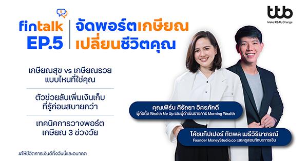 มิติหุ้น – ทีเอ็มบีธนชาต หรือ ทีทีบี ชวนพนักงานเตรียมความพร้อมสู่ชีวิตหลังเกษียณ จัดกิจกรรม fintalk “จัดพอร์ตเกษียณ เปลี่ยนชีวิตคุณ” กับ “เฟิร์น – ศิรัถยา อิศรภักดี” พิธีกรและผู้ดำเนินรายการด้านการเงินคนดัง จากช่อง Wealth Me Up และคุณแก๊ปเปอร์-ทัตพล เมธีวิริยาภรณ์ เจ้าของสถาบัน MoneyStudio.co มาร่วมเปิดมุมมอง พร้อมพาไปสำรวจรูปแบบการเกษียณ ว่ามีเครื่องมืออะไรที่เป็นตัวช่วย และที่สำคัญจัดพอร์ตการลงทุนอย่างไรให้เป้าหมายเป็นจริง
