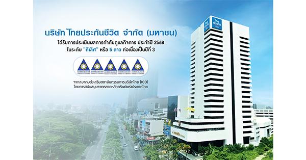 มิติหุ้น – บริษัท ไทยประกันชีวิต จำกัด (มหาชน) บริษัทประกันชีวิตแห่งแรกของคนไทย ได้รับการประเมินผลการกำกับดูแลกิจการของบริษัทจดทะเบียนไทย (Corporate Governance Report of Thai Listed Companies: CGR) ประจำปี 2568 ในระดับ “ดีเลิศ” (Excellent CG Scoring) หรือ 5 ดาว ต่อเนื่องเป็นปีที่ 3 จากสมาคมส่งเสริมสถาบันกรรมการบริษัทไทย (IOD) ภายใต้การสนับสนุนของตลาดหลักทรัพย์แห่งประเทศไทย และสำนักงานคณะกรรมการกำกับหลักทรัพย์และตลาดหลักทรัพย์ (ก.ล.ต.)