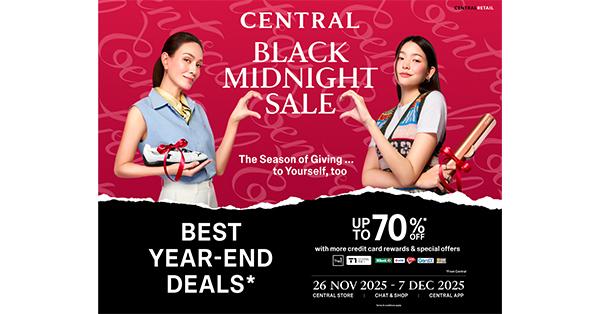 พิเศษ! ตอบรับเทศกาลช้อประดับโลก ห้างเซ็นทรัลสร้างปรากฎการณ์โปรแรงที่สุดแห่งปี ช้อป Black Friday ต้องที่ Central Black Midnight Sale “Best Year – End Deals” – ดีลที่ดีที่สุด ส่งท้ายปี ลดสูงสุด 70% พิเศษ 3 วันเท่านั้น เฉพาะวันที่ 28 – 30 พ.ย. 68 อาทิ แบรนด์ ESTEE LAUDER, SHISEIDO, ISSEY MIYAKE, WRANGLER, LEE, ADIDAS, CASIO, ESQUIRE, HAVEN, PASAYA, OMAZZ, DUNLOPILLO, FROLINA, CENTRAL HOME, TEFAL, MEYER, ZWILLING, ELECTROLUX, PHILIPS พร้อมแลกคะแนนลดเพิ่มสูงสุด 25% จากบัตรเครดิตที่ร่วมรายการ และดีลสุดเอ็กซ์คลูซีฟอื่นๆ อีกมากมาย
