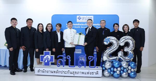 มิติหุ้น – นายฉัตรชัย ศิริไล ผู้จัดการธนาคารเพื่อการเกษตรและสหกรณ์การเกษตร (ธ.ก.ส.) ร่วมแสดงความยินดีเนื่องในโอกาสวันสถาปนาสำนักงานหลักประกันสุขภาพแห่งชาติ ครบรอบ 23 ปี โดยมี นพ.จเด็จ ธรรมธัชอารี เลขาธิการสำนักงานหลักประกันสุขภาพแห่งชาติ (สปสช.) พร้อมด้วยคณะผู้บริหาร สปสช. ให้การต้อนรับ และในโอกาสนี้ ธ.ก.ส. ได้มอบเครื่องชงกาแฟอัตโนมัติและเมล็ดกาแฟจากกลุ่มวิสาหกิจชุมชนที่ ธ.ก.ส. ให้การสนับสนุนให้แก่ สปสช. เพื่อเป็นการสนับสนุนสวัสดิการสำหรับผู้บริหารและเจ้าหน้าที่ พร้อมทั้งมอบข้าวพร้อมทาน ตรา “อุ่นอิ่ม” ซึ่งผลิตจากข้าว ทุ่งกุลาร้องไห้ ทั้งประเภทข้าวหอมมะลิ ข้าวกล้องหอมมะลิ และข้าวไรซ์เบอรี่ ที่สามารถเปิดรับประทานได้ทันที และเก็บไว้ในอุณหภูมิปกติได้นานถึง 18 เดือน ให้แก่ผู้บริหารและผู้ปฏิบัติงานของ สปสช. นำไปรับประทานระหว่างปฏิบัติภารกิจ และเพื่อเป็นการเผยแพร่ผลิตภัณฑ์ของลูกค้าให้เกิดการรับรู้ในวงกว้าง เมื่อวันที่ 19 พฤศจิกายน 2568 ณ ลานอเนกประสงค์ ชั้น 2 สำนักงานหลักประกันสุขภาพแห่งชาติ