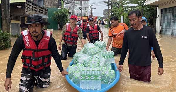 พลตรี พัชร รัตตกุล ประธานเจ้าหน้าที่บริหาร ได้กล่าวถึงแนวทางในการบริหารสถานการณ์ปัจจุบันว่า “ผมขอให้ความมั่นใจว่าสถานการณ์ในปัจจุบันยังไม่กระทบกับสายการผลิตและสำนักงานใหญ่ของเราโดยตรง ซึ่งจะทำให้เราสามารถดูแลตัวเองและเพื่อนพนักงานได้ในระดับหนึ่ง พร้อมกลับมาดำเนินงานตามปกติได้อย่างรวดเร็ว แต่ในฐานะที่ หาดทิพย์เป็นเลือดเนื้อเชื้อไขของชาวใต้ และมีบ้านของเราอยู่ที่หาดใหญ่ วิกฤตครั้งนี้คือเรื่องเร่งด่วนที่สุด ผมได้สั่งการให้ระงับการขนส่งเชิงพาณิชย์ในเส้นทางที่ได้รับผลกระทบ และเปลี่ยนภารกิจของรถบรรทุก 6 ล้อ และรถยกสูงของบริษัทฯ ทั้งหมด ให้กลายเป็นรถลำเลียงความช่วยเหลือ เพื่อนำน้ำดื่ม ‘น้ำทิพย์’ จากคลังสินค้าของเราเข้าสู่พื้นที่ที่รถเล็กไม่สามารถเข้าถึงได้และจุดอพยพต่าง ๆ อย่างเร่งด่วน โดยทำงานร่วมกับเทศบาลนครหาดใหญ่ และมหาวิทยาลัยสงขลานครินทร์อย่างใกล้ชิด เพื่อส่งความช่วยเหลือให้ตรงจุดและไม่ซ้ำซ้อน”