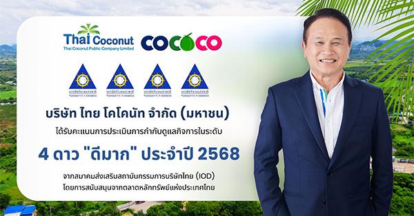 ดร.วรวัฒน์ ชิ้นปิ่นเกลียว ประธานเจ้าหน้าที่บริหาร บริษัท ไทย โคโคนัท จำกัด (มหาชน) หรือ COCOCO ผู้ผลิตจำหน่าย และส่งออกผลิตภัณฑ์แปรรูปจากมะพร้าวรายใหญ่ของไทย เปิดเผยว่า บริษัทฯ ได้รับคะแนนการประเมินการกำกับดูแลกิจการบริษัทจดทะเบียน (Corporate Governance Report: CGR) ระดับ 4 ดาว หรือ “ดีมาก” ประจำปี 2568 จากสมาคมส่งเสริมสถาบันกรรมการบริษัทไทย (IOD) โดยได้รับการสนับสนุนจากตลาดหลักทรัพย์แห่งประเทศไทย