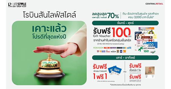 ศูนย์การค้าโรบินสันไลฟ์สไตล์ ในเครือเซ็นทรัล รีเทล ชวนขาช้อปมาสนุกกับทุกโมเมนต์แห่งการให้ช่วงสิ้นเดือนพฤศจิกายนนี้ กับแคมเปญ “Black Friday เคาะแล้วโปรดีที่สุดแห่งปี” ที่ออกแบบมาให้ตอบโจทย์ทุกไลฟ์สไตล์ของลูกค้า ส่งมอบความคุ้มค่าให้สายช้อปทั่วประเทศได้เพลิดเพลินกับสิทธิพิเศษสุดคุ้ม สินค้าทั้งศูนย์การค้าฯ ทั้งห้างฯ ลดสูงสุด 70% (เฉพาะรุ่น / เฉพาะแบรนด์) ทั้งของรางวัลและโปรโมชันพิเศษมากมาย ทั้งช้อป กิน และสนุกกับความบันเทิงครบจบในที่เดียว ตั้งแต่วันที่ 25 พ.ย. 68 – 3 ธ.ค. 68 ที่โรบินสันไลฟ์สไตล์ทุกสาขาทั่วประเทศ
