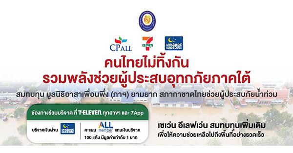 CPALL- เซเว่น อีเลฟเว่น ขอเป็นสะพานบุญเชิญชวนสมาชิก All Member บริจาคคะแนน ALL Member ช่วยผู้ประสบภัยน้ำท่วมภาคใต้ ผ่าน 7App