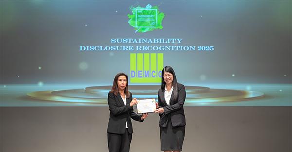 มิติหุ้น – บมจ.เด็มโก้ (DEMCO) รับรางวัลประกาศเกียรติคุณ Sustainability Disclosure Recognition ประจำปี 2568 จากสถาบันไทยพัฒน์ ต่อเนื่องเป็นปีที่ 6 โดยมี คุณศริญญา ฉิมวัย ผู้จัดการสำนักงานประธานเจ้าหน้าที่บริหารและเลขานุการบริษัท เป็นผู้แทนขึ้นรับรางวัลจากคุณวีรญา ปรียาพันธ์ ผู้อำนวยการ ประชาคมการเปิดเผยข้อมูลด้านความยั่งยืน (SDC) สถาบันไทยพัฒน์ โดยรางวัลดังกล่าวสะท้อนถึงความมุ่งมั่นของ DEMCO ในการเปิดเผยข้อมูลด้านความยั่งยืนอย่างครบถ้วน โปร่งใส และตรวจสอบได้ ตอกย้ำความรับผิดชอบต่อสังคม สิ่งแวดล้อม และผู้มีส่วนได้ส่วนเสียทุกภาคส่วน งานมอบรางวัลจัดขึ้น ณ ห้องออดิทอเรียม หอศิลปวัฒนธรรมแห่งกรุงเทพมหานคร เมื่อเร็วๆ นี้