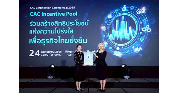 ในการนี้ นางจินตณา กิ่งแก้ว รองกรรมการผู้จัดการ เป็นผู้แทนบริษัทเข้ารับมอบประกาศนียบัตรจาก นางอรนุช อภิศักดิ์ศิริกุล (CAC Council) คณะกรรมการแนวร่วมต่อต้านการคอร์รัปชันของภาคเอกชนไทย ณ โรงแรมไฮแอท รีเจนซี่ กรุงเทพฯ เมื่อวันที่ 24 พฤศจิกายน 2568