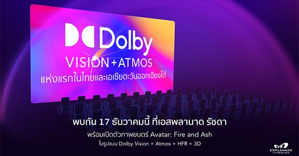 โรงภาพยนตร์ Dolby Vision + Atmos เตรียมเปิดให้บริการอย่างเป็นทางการ ในวันที่ 17 ธันวาคม 2568 ณ โรงภาพยนตร์ที่ เอสพลานาด ซีนีเพล็กซ์ รัชดา ถือเป็นการวางหมุดหมายสำคัญของ เมเจอร์ ซีนีเพล็กซ์ กรุ้ป ในการรุกตลาดด้วยกลยุทธ์ด้านประสบการณ์ (Experience Driven Marketing) มอบเป็นของขวัญสุดพิเศษให้คนรักหนังส่งท้ายปี ด้วยประสบการณ์ระดับเวิลด์คลาส พร้อมภาพยนตร์เปิดตัว AVATAR FIRE & ASH จะเข้าฉายใน ระบบ Dolby Vision + Atmos แบบ High Frame Rate 3ซึ่งจะเปิดขายบัตรล่วงหน้าตั้งแต่วันที่ 1 ธันวาคมเป็นต้นไป บน Application Major Cineplex.
