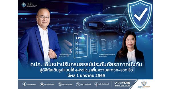 การขับเคลื่อนกรมธรรม์ประกันภัยรถภาคบังคับในรูปแบบอิเล็กทรอนิกส์ (e-Policy) นับเป็นก้าวสำคัญของอุตสาหกรรมประกันภัยไทยที่ก้าวเข้าสู่ระบบดิจิทัลอย่างเต็มรูปแบบ ซึ่งจะเป็นส่วนช่วยให้ประชาชนเข้าถึงข้อมูลกรมธรรม์ของตนเองได้ง่ายขึ้น สามารถตรวจสอบรายละเอียดกรมธรรม์ ความคุ้มครอง รวมถึงวันหมดอายุของกรมธรรม์ได้ง่ายเพียงแค่ปลายนิ้ว ในขณะเดียวกัน การปรับเปลี่ยนในครั้งนี้ไม่ได้เป็นการกระทบสิทธิประโยชน์ของประชาชนหรือผู้เอาประกันภัยแต่อย่างใด เพียงแต่เป็นการปรับเปลี่ยนวิธีการให้เท่าทันกับยุคสมัย เพื่อให้ประชาชนได้รับบริการที่รวดเร็ว โปร่งใส และตอบโจทย์การใช้ชีวิตในยุคที่เทคโนโลยีดิจิทัลเข้ามาเป็นส่วนหนึ่งในชีวิตประจำวัน ตลอดจนเป็นการอำนวยความสะดวกในการตรวจสอบข้อมูลการมีกรมธรรม์ประกันกันภัยของหน่วยงานภาครัฐ ทำให้การชำระภาษีรถประจำปีกับกรมการขนส่งทางบก รวมถึงการเบิกจ่ายค่ารักษาพยาบาลของผู้ประสบภัยจากรถของโรงพยาบาลเป็นไปอย่างรวดเร็ว และมีประสิทธิภาพมากยิ่งขึ้น ทั้งนี้ รายละเอียดเกี่ยวกับการเก็บรวบรวม การใช้ และการเปิดเผยข้อมูลส่วนบุคคลของสำนักงาน สามารถตรวจสอบได้จากนโยบายการคุ้มครองข้อมูลส่วนบุคคลบนเว็บไซต์ www.oic.or.th