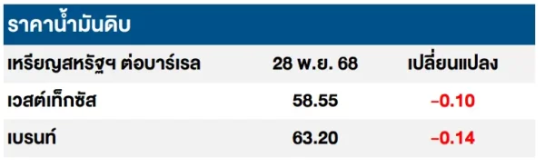 (+/-) ตลาดจับตาการประชุมของกลุ่ม OPEC+ ที่จะมีขึ้นในวันอาทิตย์ที่30 พ.ย. 68 โดยล่าสุดนักวิเคราะห์เผยทางกลุ่มคาดการณ์ว่าจะยัง คงโควตาการผลิตน้ำมันสำหรับปี 69 ไว้ตามเดิม นอกจากนี้จะมีการหารือกลไกใหม่เพื่อประเมินกำลังการผลิตสูงสุดของแต่ละประเทศสมาชิก