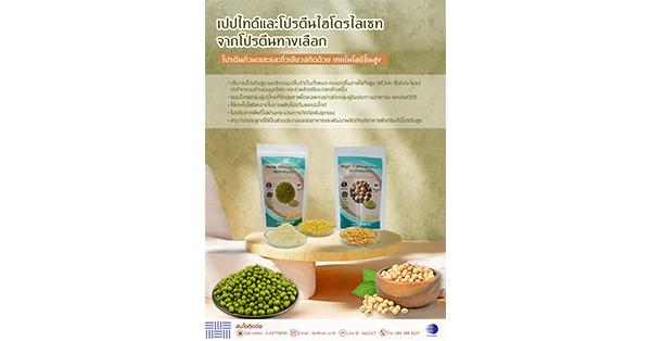 กระทรวงการอุดมศึกษา วิทยาศาสตร์ วิจัยและนวัตกรรม (อว.) โดย ศูนย์เชี่ยวชาญนวัตกรรมอาหารสุขภาพ สถาบันวิจัยวิทยาศาสตร์และเทคโนโลยีแห่งประเทศไทย (วว.) ดำเนิน โครงการพัฒนาเทคโนโลยีการผลิตโปรตีนและอนุพันธ์โปรตีนจากพืชฐานชีวภาพของไทยระดับกึ่งอุตสาหกรรม เพื่อถ่ายทอดสู่เชิงพาณิชย์ในอุตสาหกรรมอาหารสุขภาพ ประสบผลสำเร็จวิจัยและพัฒนา “ต้นแบบผลิตภัณฑ์เปปไทด์ที่ออกฤทธิ์ทางชีวภาพระดับกึ่งอุตสาหกรรม” ได้แก่ 1) ผลิตภัณฑ์โปรตีนถั่วเขียวไฮโดรไลเสท และ 2) ผลิตภัณฑ์โปรตีนถั่วมะแฮะไฮโดรไลเสท