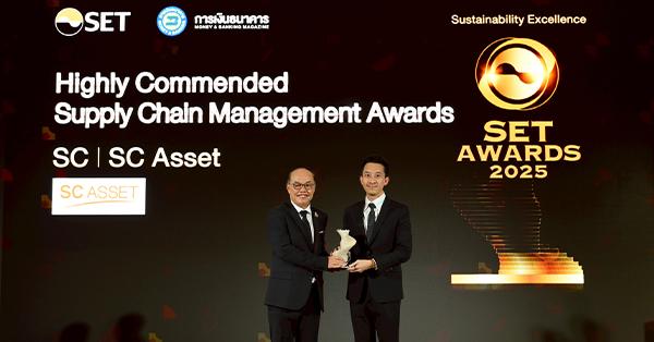 นายณัฐพงศ์ คุณากรวงศ์ ประธานเจ้าหน้าที่บริหาร บริษัท เอสซี แอสเสท คอร์ปอเรชั่น จำกัด (มหาชน) หรือ SC Asset เปิดเผยว่า บริษัทได้รับรางวัลแห่งเกียรติยศด้านความยั่งยืนจากเวที SET Awards 2025 จัดโดยตลาดหลักทรัพย์แห่งประเทศไทยและวารสารการเงินธนาคาร ได้แก่ รางวัล Sustainability Excellence: Highly Commended Supply Chain Management Awards ที่มอบให้กับบริษัทจดทะเบียนที่มีความโดดเด่นในการบริหารจัดการห่วงโซ่อุปทานอย่างมีประสิทธิภาพ ยั่งยืนและสร้างผลลัพธ์ที่เป็นรูปธรรมต่อทั้งองค์กรและคู่ค้า เพื่อนำไปสู่โอกาสการแข่งขันเชิงธุรกิจ