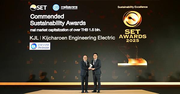 นายเกษมสันต์ สุจิวโรดม ประธานเจ้าหน้าที่บริหาร บริษัท กิจเจริญ เอ็นจิเนียริ่ง อีเลคทริค จำกัด (มหาชน) หรือ KJL เปิดเผยว่า บริษัทได้รับรางวัลด้านความยั่งยืน Commended Sustainability Awards หมวดรางวัลด้านความเป็นเลิศด้านความยั่งยืน (Sustainability Excellence) สำหรับบริษัทจดทะเบียนในตลาด mai ที่มีมูลค่าหลักทรัพย์มากกว่า 1.5 พันล้านบาท จากเวทีเกียรติยศ SET Awards 2025 จัดโดยตลาดหลักทรัพย์แห่งประเทศไทย ร่วมกับวารสารการเงินธนาคารสะท้อนถึงความเป็นผู้นำที่เปี่ยมด้วยวิสัยทัศน์เชิงกลยุทธ์ การบริหารจัดการอย่างโปร่งใส และความมุ่งมั่นในการขับเคลื่อนองค์กรด้วยหลักธรรมาภิบาล สู่การเติบโตอย่างยั่งยืน พร้อมทั้งการสื่อสารกับนักลงทุนอย่างมีประสิทธิภาพ และการพัฒนานวัตกรรมอย่างต่อเนื่อง เพื่อสร้างคุณค่าให้แก่ผู้มีส่วนได้ส่วนเสียทุกภาคส่วน