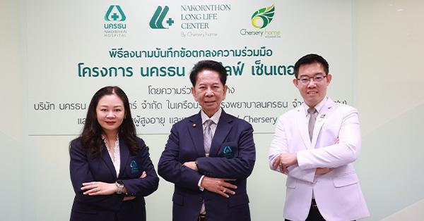 รศ.ญาณเดช ทองสิมา ประธานกรรมการ บริษัท โรงพยาบาลนครธน จำกัด (มหาชน) (NKT) เปิดเผยว่า โครงการนครธน ลอง ไลฟ์ เซ็นเตอร์ เริ่มก่อสร้างขึ้นเมื่อต้นปี 2568 ซึ่งตั้งอยู่บริเวณซอยพระราม ที่ 2 ซอย 56 (ห่างจากโรงพยาบาลนครธนเพียง 350 เมตร) โดยมีวัตถุประสงค์เพื่อเป็นการเชื่อมโยงกับชุมชนโดยรอบ ทั้ง หมู่บ้าน ที่อยู่อาศัย โรงเรียน โรงเรียนนานาชาติ โรงพยาบาล คอมมูนิตี้ มอลล์ และศูนย์การค้าต่างๆ อีกทั้งยังเป็นการยกระดับพื้นที่พระราม 2 ให้เป็นคอมมูนิตี้ที่เหมาะกับทุกคนทุกช่วงวัย โดยการพัฒนาโครงการดังกล่าวเป็นส่วนหนึ่งของการรองรับสังคมผู้สูงอายุที่กำลังขยายตัว จึงได้ร่วมมือกับ โรงพยาบาลผู้สูงอายุและศูนย์เวชศาสตร์ฟื้นฟู Chersery Home (เฌ้อสเซอรี่ โฮม) ที่มีประสบการณ์ด้านการดูแลผู้สูงอายุกว่า 10 ปี เพื่อเสริมศักยภาพด้านการบริการ และการเข้าถึงความต้องการที่แตกต่างของผู้สูงวัยและญาติ รวมไปถึงการส่งเสริมสุขภาพให้มีคุณภาพชีวิตที่ดีอย่างยั่งยืน เกิดเป็นโครงการ “นครธน ลอง ไลฟ์ เซ็นเตอร์ บาย เฌ้อสเซอรี่ โฮม”
