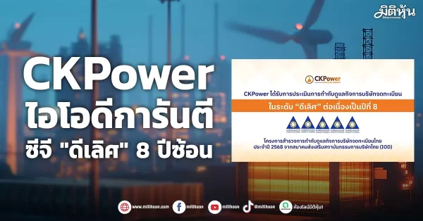 บริษัท ซีเค พาวเวอร์ จำกัด (มหาชน) หรือ CKPower (ชื่อย่อหลักทรัพย์: CKP) หนึ่งในผู้นำในการผลิตไฟฟ้าจากพลังงานหมุนเวียนที่ใหญ่ที่สุดในภูมิภาคและมีคาร์บอนฟุตพรินต์ที่ต่ำที่สุดรายหนึ่ง ได้รับคะแนนการประเมินการกำกับดูแลกิจการในระดับ 5 ดาว หรือ ระดับ “ดีเลิศ” (Excellent CG Scoring) ต่อเนื่องเป็นปีที่ 8 จากผลการสำรวจโครงการสำรวจการกำกับดูแลกิจการบริษัทจดทะเบียนไทย ประจำปี 2568 Corporate Governance Report of Thai Listed Companies 2025 (CGR 2025) จากสมาคมส่งเสริมสถาบันกรรมการบริษัทไทย (Thai IOD) ภายใต้การสนับสนุนจากตลาดหลักทรัพย์แห่งประเทศไทย (ตลท.) และ สำนักงานคณะกรรมการกำกับหลักทรัพย์และตลาดหลักทรัพย์ (ก.ล.ต.)