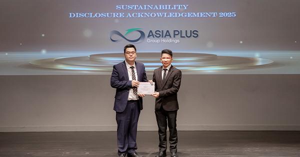 มิติหุ้น – บริษัท เอเซีย พลัส กรุ๊ปโฮลดิ้งส์ จำกัด (มหาชน) ได้รับ รางวัลการเปิดเผยข้อมูลความยั่งยืน (Sustainability Disclosure Acknowledge) ประจำปี 2568 จากสถาบันไทยพัฒน์ เมื่อวันที่ 25 พฤศจิกายนที่ผ่านมา ถือเป็นอีกหนึ่งความสำเร็จสำคัญที่สะท้อนถึงความมุ่งมั่นของบริษัทในการดำเนินธุรกิจอย่างโปร่งใส ตรวจสอบได้ และให้ความสำคัญกับผู้มีส่วนได้ส่วนเสียทุกภาคส่วน รางวัลนี้จัดขึ้นเพื่อเชิดชูองค์กรที่รายงานข้อมูลด้านความยั่งยืนอย่างครบถ้วน ครอบคลุมทั้ง เศรษฐกิจ สังคม และสิ่งแวดล้อม พร้อมยกระดับมาตรฐานการบริหารจัดการตามหลัก ESG (Environmental, Social, Governance) ซึ่งกลุ่มบริษัท เอเซีย พลัส ได้ดำเนินมาอย่างต่อเนื่องและจริงจัง