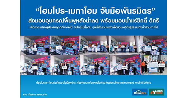 พร้อมกันนี้ โฮมโปร และเมกาโฮม ยังได้จับมือกับพันธมิตรทางธุรกิจหลากหลายแบรนด์ชั้นนำ ได้แก่ 6ty Degrees, PHILIPS, HITACHI, SAMSUNG, MEX / SMEG, Electrolux, Bwell, ASTINA, STIEBEL ELTRON, TOSHIBA, Acerpure, TEFAL, Xiaomi, GAZU, LUCKY FLAME, STARMARK, 3MITI, TECNOGAS, TECNOPLUS และ TECNOSTAR ร่วมมอบ น้ำแร่ซิกตี้ ดีกรี (6ty Degrees), ผ้าห่ม และเตาแก๊สปิคนิค เพื่อกระจายไปยังชุมชนและศูนย์อพยพในหลายพื้นที่ของภาคใต้ที่กำลังประสบปัญหาขาดแคลนสิ่งของจำเป็น และน้ำดื่มสะอาดอย่างเร่งด่วน การมอบน้ำดื่มในครั้งนี้นับเป็นอีกหนึ่งภารกิจสำคัญที่สะท้อนถึงความร่วมมือระหว่างโฮมโปร เมกาโฮม และพันธมิตรทางธุรกิจ ที่พร้อมสนับสนุนและยืนหยัดเคียงข้างประชาชนในช่วงเวลาที่เกิดวิกฤต โดยมี นายวรพจน์ เตชะธาดากุล ผู้ช่วยกรรมการผู้จัดการ กลุ่มงานจัดซื้อ Kitchen & Home Living บริษัท โฮม โปรดักส์ เซ็นเตอร์ จำกัด (มหาชน) หรือ โฮมโปร เป็นผู้แทนส่งต่อความช่วยเหลือทั้งหมด เพื่อให้การสนับสนุนต่างๆ เข้าถึงพื้นที่ที่ต้องการอย่างรวดเร็ว ทั่วถึง และทันท่วงที ทั้งนี้ เรายังคงติดตามสถานการณ์น้ำท่วมอย่างใกล้ชิด พร้อมประสานงาน ความร่วมมือกับหน่วยงานท้องถิ่นเพื่อเตรียมส่งมอบความช่วยเหลือเพิ่มเติม ทั้งในด้านน้ำดื่ม สิ่งของจำเป็น อุปกรณ์ซ่อมแซมบ้าน รวมถึงการส่งต่อกำลังใจให้แก่ผู้ประสบภัยในทุกพื้นที่