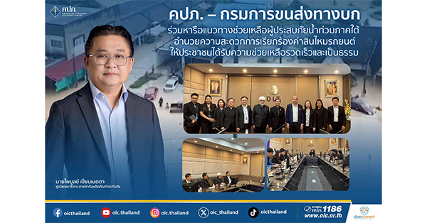 คปภ. – กรมการขนส่งทางบก ร่วมหารือแนวทางช่วยเหลือผู้ประสบภัยน้ำท่วมภาคใต้ อำนวยความสะดวกการเรียกร้องค่าสินไหมรถยนต์ให้ประชาชนได้รับความช่วยเหลือรวดเร็วและเป็นธรรม
