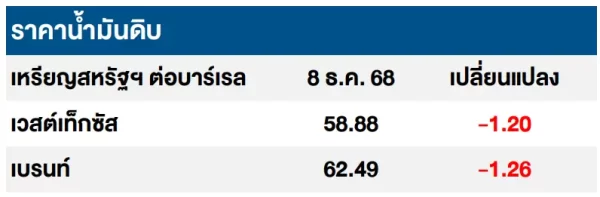 (-) ราคาน้ำมันดิบเวสต์เท็กซัสและเบรนท์ปรับลดลง หลังอิรักสามารถกลับมาผลิตน้ำมันดิบได้อีกครั้ง ซึ่งก่อนหน้าต้องหยุดการผลิตน้ำมันดิบ ณ แหล่งน้ำมันดิบเวสต์ คูร์นา 2 (West Qurna 2) ของลูคออยล์ (Lukoil) เนื่องจากท่อส่งน้ำมันดิบเกิดการรั่วไหล โดยแหล่งน้ำมันดังกล่าวมีกำลังการผลิตประมาณ 460,000 บาร์เรลต่อวัน คิดเป็น 0.5% ของปริมาณ การผลิตน้ำมันดิบทั่วโลก และคิดเป็น 9% ของปริมาณการผลิตทั้งหมด ในอิรัก