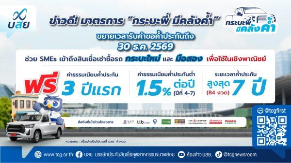 มิติหุ้น – นายสิทธิกร ดิเรกสุนทร กรรมการและผู้จัดการทั่วไป บรรษัทประกันสินเชื่ออุตสาหกรรมขนาดย่อม (บสย.) กล่าวว่า ปัจจุบันมาตรการ “กระบะพี่ มีคลังค้ำ” มีวงเงินค้ำประกันรวม 3,700 ล้านบาท มาพร้อมสิทธิประโยชน์ ฟรีค่าธรรมเนียมค้ำประกัน 3 ปีแรก ส่วนปีที่ 4-7 คิดค่าธรรมเนียมค้ำประกันต่ำเพียง 1.5% ต่อปี ของภาระหนี้ค้ำประกันในแต่ละปี พร้อมค้ำประกันสูงสุด 7 ปี หรือ 84 งวด วงเงินค้ำประกันสูงสุด 1.5 ล้านบาทต่อราย ตั้งเป้ามาตรการนี้จะช่วยปลดล็อก SMEs ให้สามารถเข้าถึงสินเชื่อได้ง่ายขึ้น ทั้งช่วยสนับสนุนอุตสาหกรรมยานยนต์ที่ซบเซาให้กลับมาคึกคัก ซึ่งจะส่งผลต่อการขับเคลื่อนเศรษฐกิจไทยในภาพรวม