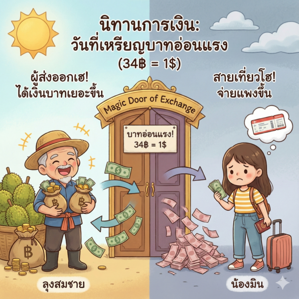 👴 ลุงสมชาย ชาวสวนส่งออก: “สวรรค์โปรด! วันนี้ได้เงินบาทกลับมาตุงกระเป๋า!” 🤑