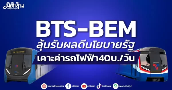 มิติหุ้น – โบรกส่องหุ้นรถไฟฟ้า BTSและBEM เด่นสุดรับผลดี Sentiment บวกนโยบายค่าโดยสาร 40 บาทตลอดสายแบบ Single Ownership ประหยัดเงินในกระเป๋าตั้งแต่ 50% จนถึง 2 เท่า
