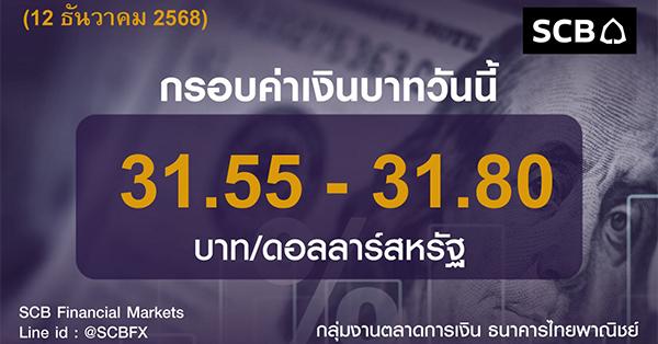 - กลุ่มงานตลาดการเงิน ธนาคารไทยพาณิชย์ ประเมินค่าเงินบาทวันนี้เคลื่อนไหวในกรอบ 31.55-31.80 บาท/ดอลลาร์