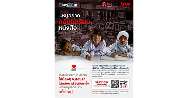 มิติหุ้น – กรุงเทพฯ 12 ธันวาคม 2568 – “หนูอยากกลับไปเรียนหนังสือ” เสียงเล็กๆ ที่เปี่ยมด้วยความหวังของเด็กๆ ในจ.สงขลา หลังเผชิญเหตุการณ์อุทกภัยครั้งใหญ่ที่ผ่านมา ยังคงก้องอยู่ในใจของใครหลายคน และเพื่อส่งต่อโอกาสครั้งใหม่ให้การเรียนรู้เด็กไทยได้เดินหน้าต่อ ทรู คอร์ปอเรชั่น โดยทรูปลูกปัญญา ร่วมกับมูลนิธิสานอนาคตการศึกษา คอนเน็กซ์อีดี ขอเชิญชวนทุกคนร่วมเป็นส่วนหนึ่งในกิจกรรมดีๆ “คืนอนาคตเด็กไทย” ระดมทุนช่วยเหลือนักเรียนกว่า 3,500 คน ใน 18 โรงเรียนคอนเน็กซ์อีดี ภายใต้การดูแลของทรู จ.สงขลา ซึ่งเป็นโรงเรียนที่ได้รับความเสียหายอย่างหนักและครอบครัวนักเรียนได้รับผลกระทบในอุทกภัยครั้งนี้ ด้วยการร่วมสมทบทุนบริจาคเพื่อจัดหาอุปกรณ์ไอซีที สื่อการเรียนรู้ ชุดนักเรียน อุปกรณ์กีฬา ไปจนถึงสิ่งอำนวยความสะดวกที่จำเป็นต่อการเปิดเรียน เพื่อให้น้องๆ ได้กลับมาเรียนหนังสืออีกครั้ง เล่นกับเพื่อนๆ และเติบโตอย่างมีคุณภาพและมีความสุข