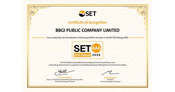 มิติหุ้น – บริษัท บีบีจีไอ จำกัด (มหาชน) หรือ BBGI ได้รับการจัดอันดับหุ้นยั่งยืน (SET ESG Ratings) ประจำปี 2568 อยู่ในระดับ “AAA” (คะแนนรวม 90–100) ซึ่งเป็นระดับสูงสุด และเพิ่มขึ้นจากปีที่ผ่านมา โดยจัดทำโดย ตลาดหลักทรัพย์แห่งประเทศไทย สะท้อนถึงความโดดเด่นด้านการดำเนินธุรกิจอย่างมีธรรมาภิบาล โปร่งใส และยั่งยืน
