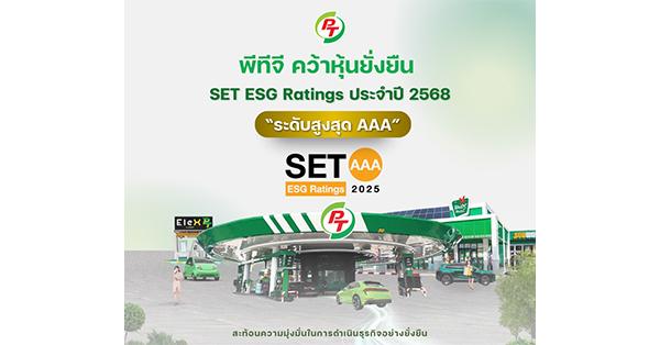มิติหุ้น – บริษัท พีทีจี เอ็นเนอยี จำกัด (มหาชน) หรือ PTG ได้รับผลการประเมินความยั่งยืน SET ESG Ratings ประจำปี 2568 ในระดับสูงสุด “AAA” จากตลาดหลักทรัพย์แห่งประเทศไทย สะท้อนถึงการดำเนินธุรกิจที่บูรณาการมิติด้านสิ่งแวดล้อม สังคม และบรรษัทภิบาล (ESG) เข้ากับกลยุทธ์และการดำเนินงานขององค์กรอย่างเป็นรูปธรรม