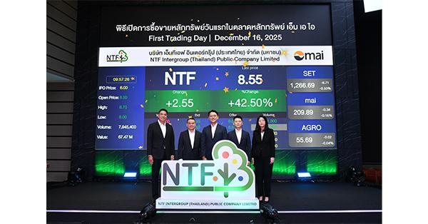 มิติหุ้น – บมจ.เอ็นทีเอฟ อินเตอร์กรุ๊ป (ประเทศไทย) “NTF” เข้าเทรดตลาดเอ็ม เอ ไอ วันแรก (16 ธ.ค.68) ปิดท้ายปี นักลงทุนตอบรับดี สะท้อนจากผลงานที่โดดเด่น จับกลุ่มสินค้าผลไม้พรีเมียม เข้าขยายตลาดที่มีศักยภาพและเติบโตต่อเนื่อง เตรียมนำเงินระดมทุนต่อยอดธุรกิจ พัฒนาเทคโนโลยี เพิ่มกำลังการผลิตรองรับความต้องการทั้งปัจจุบันและอนาคต ตอกย้ำผลไม้ไทยมีมูลค่าสูงในตลาดโลก
