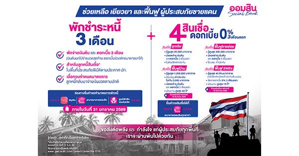 GSB จัดเต็มชุดมาตรการช่วยลูกหนี้ในพื้นที่ชายแดน พักหนี้ 3 เดือน – ดอกเบี้ยยกให้ สินเชื่อพิเศษ ดอกเบี้ย 0% ใน 3 เดือนแรก พร้อมจัดงบช่วยเหลือเฉพาะหน้าและงบเยียวยาครอบครัวผู้เสียชีวิต