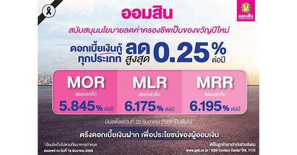 มิติหุ้น – นางลภาวรรณ จันทร์กระจ่าง รองผู้อำนวยการธนาคารออมสิน รักษาการแทนผู้อำนวยการธนาคารออมสิน เปิดเผยว่า ตามที่คณะกรรมการนโยบายการเงิน หรือ กนง. มีมติให้ลดอัตราดอกเบี้ยลง 0.25% ต่อปี เนื่องจากเศรษฐกิจไทยในปี 2569 และต่อเนื่องในปี 2570 มีแนวโน้มชะลอตัวลง ซึ่งการผ่อนคลายนโยบายการเงินเพิ่มเติมจะช่วยสนับสนุนการฟื้นตัวของเศรษฐกิจและช่วยบรรเทาภาระหนี้ของกลุ่มเปราะบาง ธนาคารออมสินจึงประกาศลดอัตราดอกเบี้ยเงินกู้ทุกประเภทสูงสุด 0.25% ต่อปี ซึ่งเป็นอัตราลดดอกเบี้ยสูงสุดตามมติ กนง. เพื่อช่วยลดภาระค่าครองชีพและเป็นของขวัญปีใหม่ให้ลูกค้าของธนาคาร โดยอัตราดอกเบี้ย MOR ลดลง 0.25% ต่อปี MLR ลดลง 0.15% ต่อปี และ MRR ลดลง 0.10% ต่อปี ทำให้อัตราดอกเบี้ยเงินกู้ขั้นต่ำสำหรับลูกค้าใช้วงเงินเบิกเกินบัญชี (MOR) ลดเหลือ 5.845% ต่อปี อัตราดอกเบี้ยเงินกู้ขั้นต่ำสำหรับลูกค้าสินเชื่อรายใหญ่ (MLR) ลดเหลือ 6.175% ต่อปี และอัตราดอกเบี้ยเงินกู้ขั้นต่ำสำหรับลูกค้ารายย่อย (MRR) ลดเหลือ 6.195% ต่อปี โดยเริ่มมีผลตั้งแต่วันที่ 22 ธันวาคม 2568 เป็นต้นไป หรือจนกว่าจะมีการเปลี่ยนแปลง ทำให้ปัจจุบันอัตราดอกเบี้ยเงินกู้ทั้ง 3 ประเภทของธนาคาร (MOR/MLR/MRR) ยังคงต่ำที่สุดเมื่อเทียบกับอัตราดอกเบี้ยของธนาคารพาณิชย์ขนาดใหญ่ 6 แห่ง สำหรับอัตราดอกเบี้ยเงินฝาก ธนาคารจะยังคงตรึงอัตราดอกเบี้ยเดิมเพื่อรักษาประโยชน์ของผู้ฝากเงินตามภารกิจส่งเสริมการออมของธนาคาร