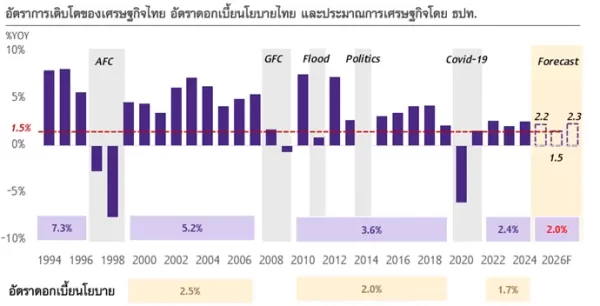 รูปที่ 3 : เศรษฐกิจไทยปี 2026 อาจโตต่ำสุดในรอบ 30 ปี (ไม่นับช่วงวิกฤต)