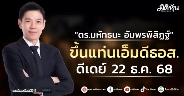มิติหุ้น – คณะกรรมการธนาคารอาคารสงเคราะห์ (ธอส.) มีมติแต่งตั้ง ดร.มหัทธนะ อัมพรพิสิฏฐ์ ดำรงตำแหน่งกรรมการผู้จัดการธนาคารอาคารสงเคราะห์ โดยความเห็นชอบของรัฐมนตรีว่าการกระทรวงการคลัง และธนาคารแห่งประเทศไทย มีผลตั้งแต่วันที่ 22 ธันวาคม 2568 เป็นต้นไป