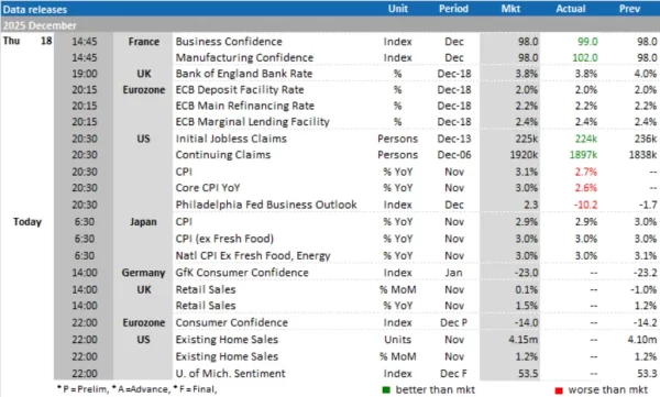 - สหรัฐ: ยอดขายบ้านมือสอง (Existing Home Sales) เดือน พ.ย.และและดัชนีความเชื่อมั่นผู้บริโภคของมหาวิทยาลัยมิชิแกน (U. of Mich. Sentiment) เดือน ธ.ค.