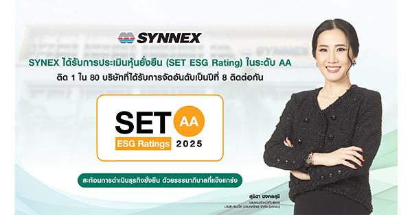 SYNEX ได้รับประเมินหุ้นยั่งยืน (SET ESG Ratings) ในระดับ AA ติด 1 ใน 80 บริษัทที่ได้รับการจัดอันดับเป็นปีที่ 8 ติดต่อกัน สะท้อนการดำเนินธุรกิจยั่งยืน ด้วยธรรมาภิบาลที่แข็งแกร่ง