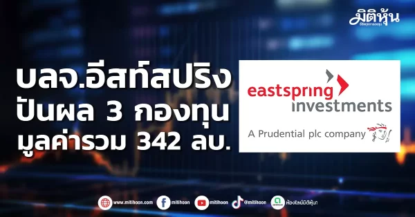 บริษัทหลักทรัพย์จัดการกองทุน อีสท์สปริง (ประเทศไทย) จำกัด หรือ บลจ.อีสท์สปริง เตรียมจ่ายเงินปันผลกองทุนภายใต้การบริหารจัดการจำนวน 3 กองทุน ประกอบด้วย กองทุนเปิดอีสท์สปริง Asia Pacific Property Flexible (ES-APPF) สำหรับรอบระยะเวลาบัญชี 6 เดือน ตั้งแต่วันที่ 1 มิถุนายน 2568 ถึงวันที่ 30 พฤศจิกายน 2568 ในอัตรา 0.30 บาทต่อหน่วย ส่วนอีก 2 กองทุน สําหรับรอบระยะเวลาบัญชี 3 เดือน ตั้งแต่วันที่ 1 กันยายน 2568 ถึงวันที่ 30 พฤศจิกายน 2568 ได้แก่ กองทุนเปิดอีสท์สปริง Property and Infrastructure Income Plus Flexible (ES-PIPF) ในอัตรา 0.30 บาทต่อหน่วย และ กองทุนเปิดอีสท์สปริง Property and Infrastructure Flexible (ES-PROPINFRAFLEX) ในอัตรา 0.20 บาทต่อหน่วย กำหนดจ่ายปันผลในวันที่ 22 ธันวาคม 2568 รวมมูลค่าจ่ายปันผล 342 ล้านบาท