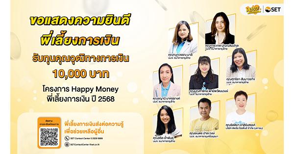 โครงการ “Happy Money พี่เลี้ยงการเงิน” ดำเนินการมาตั้งแต่ปี 2564 เพื่อส่งเสริมความรู้ด้านการเงินและทักษะการให้คำแนะนำ นำไปสู่การส่งต่อความรู้ในองค์กร ปัจจุบันได้สร้างพี่เลี้ยงการเงินแล้วกว่า 1,000 คน ผ่านกระบวนการเรียนรู้อย่างเข้มข้น ด้วยหลักสูตร SET e-Learning และสื่อการเรียนรู้ต่างๆ ของตลาดหลักทรัพย์ฯ หวังให้เกิดการปรับเปลี่ยนพฤติกรรมนำไปสู่ความสำเร็จทางการเงินได้อย่างเป็นรูปธรรม องค์กรที่สนใจร่วมส่งเสริมความรู้ด้านการเงินกับตลาดหลักทรัพย์ฯ ดูรายละเอียดเพิ่มเติมที่ www.set.or.th/happymoney
