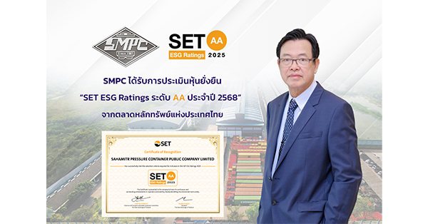มิติหุ้น – บริษัท สหมิตรถังแก๊ส จำกัด (มหาชน) หรือ SMPC ได้รับการประเมินหุ้นยั่งยืน SET ESG Ratings ระดับ AA ประจำปี 2568 จากตลาดหลักทรัพย์แห่งประเทศไทย นับเป็นความสำเร็จต่อเนื่องเป็นปีที่ 3 แสดงถึงความสม่ำเสมอในการดำเนินงานด้านความยั่งยืนตามเกณฑ์การประเมินของตลาดทุนไทย ในการบริหารจัดการที่มุ่งสร้างการเติบโตทางธุรกิจควบคู่กับการพัฒนานวัตกรรม โดยให้ความสำคัญกับปัจจัยด้านสิ่งแวดล้อม สังคม และบรรษัทภิบาล (Environmental, Social and Governance: ESG) ครอบคลุมทุกกระบวนการดำเนินธุรกิจ การสร้างผลตอบแทนที่ยั่งยืนในระยะยาว