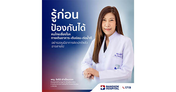 การส่องกล้องทางเดินอาหาร ในปัจจุบันนับว่าเป็นการลงทุนด้านสุขภาพที่คุ้มค่า เพราะการรู้ก่อน ทำให้สามารถป้องกันและรักษาได้ทันเวลา โรงพยาบาลกรุงเทพ เน้นการดูแลด้วยเทคโนโลยีทันสมัยควบคู่กับความใส่ใจในผู้ป่วยทุกขั้นตอน เพื่อให้ทุกคนรู้สึกมั่นใจ ปลอดภัย และได้รับการดูแลแบบองค์รวมตั้งแต่ตรวจวินิจฉัยจนถึงการติดตามรักษา สอบถามข้อมูลเพิ่มเติม ได้ที่ศูนย์ระบบทางเดินอาหารและตับ โรงพยาบาลกรุงเทพ โทร. 1719 หรือ www.bangkokhospital.com