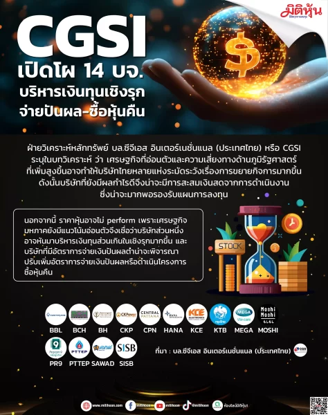 CGSI เปิดโผ 14 บจ. บริหารเงินทุนเชิงรุก จ่ายปันผล-ซื้อหุ้นคืน