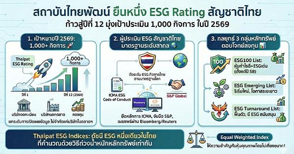 มิติหุ้น – สถาบันไทยพัฒน์ โดยหน่วยงาน Thaipat ESG Rating ยืนหยัดการจัดระดับองค์กรที่มีการดำเนินงานโดดเด่นด้านสิ่งแวดล้อม สังคม และธรรมาภิบาล (Environmental Social and Governance: ESG) เพื่อยกระดับการเปิดเผยข้อมูลด้านความยั่งยืนของธุรกิจไทย ที่ไม่จำกัดเพียงบริษัทจดทะเบียน เตรียมพร้อมประเมิน ESG กิจการไทย เข้าสู่หลักพันแห่งในปี พ.ศ. 2569 นี้