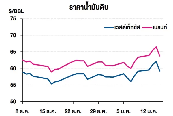 (-) สำนักงานสารสนเทศด้านพลังงานสหรัฐฯ (EIA) เปิดเผยตัวเลขน้ำมันดิบคงคลังสหรัฐฯ ประจำสัปดาห์สิ้นสุด ณ วันที่ 9 ม.ค. 69 ปรับเพิ่มขึ้น 3.4 ล้านบาร์เรล สู่ระดับ 422.4 ล้านบาร์เรล ซึ่งสวนทางกับที่นักวิเคราะห์คาดไว้ว่าจะปรับลดลง 1.7 ล้านบาร์เรล