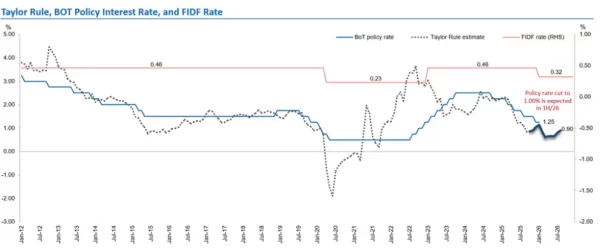 • มุมมองต่อการลดดอกเบี้นนโยบาย จากเดิมเราให้น้ำหนักว่าอาจจะมีการลดอัตราดอกเบี้ยนโยบายอีก 1 ครั้งเพิ่มเติม ในการประชุมเดือน ก.พ. ที่จะถึงนี้ ลงไปสู่ระดับ 1.00% แต่จากการประกาศลด FIDF ตามมา หลังการลดดอกเบี้ยนโยบายในเดือน ธ.ค. 2568 ที่ผ่านมา เรามองว่ามีโอกาสเพิ่มขึ้นที่ ธปท. อาจเลื่อนการพิจารณาลดอัตราดอกเบี้ยนโยบายออกไปเป็นการประชุมในเดือน เม.ย. เพื่อรอดูผลของการส่งผ่านนโยบาย (Policy Transmission) จากทั้งการลดดอกเบี้ยครั้งก่อนและการลด FIDF ประกอบกับการรักษาพื้นที่นโยบาย (Policy Space)  ไว้รองรับความเสี่ยงด้านลบ (Negative shocks) ที่อาจเกิดขึ้นในระยะข้างหน้า