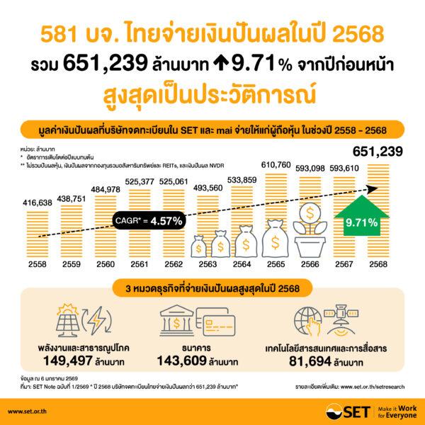 581 บจ.ไทยจ่ายเงินปันผลในปี2568